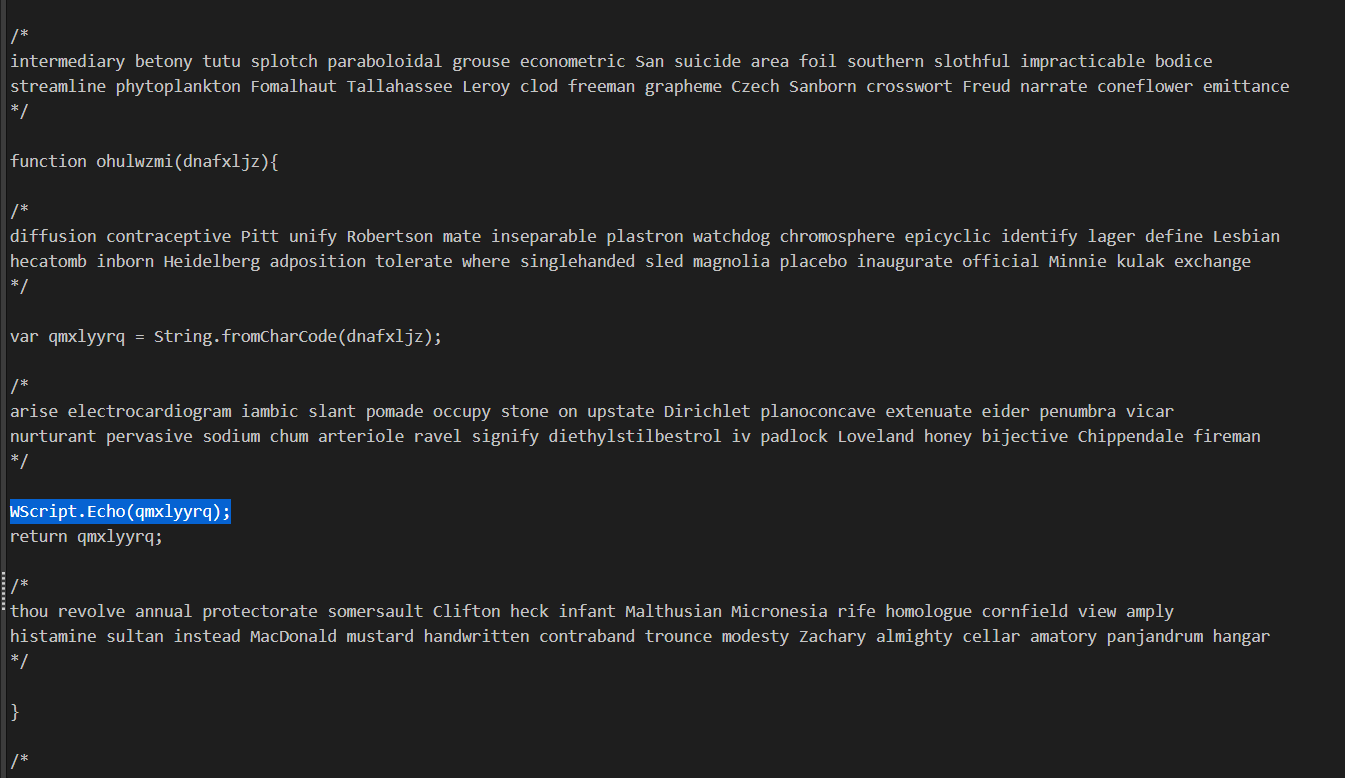 To effectively utilize this decoding trick with javascript malware it’s better to run the malware with cscript instead of wscript and pipe the output to another file like such: